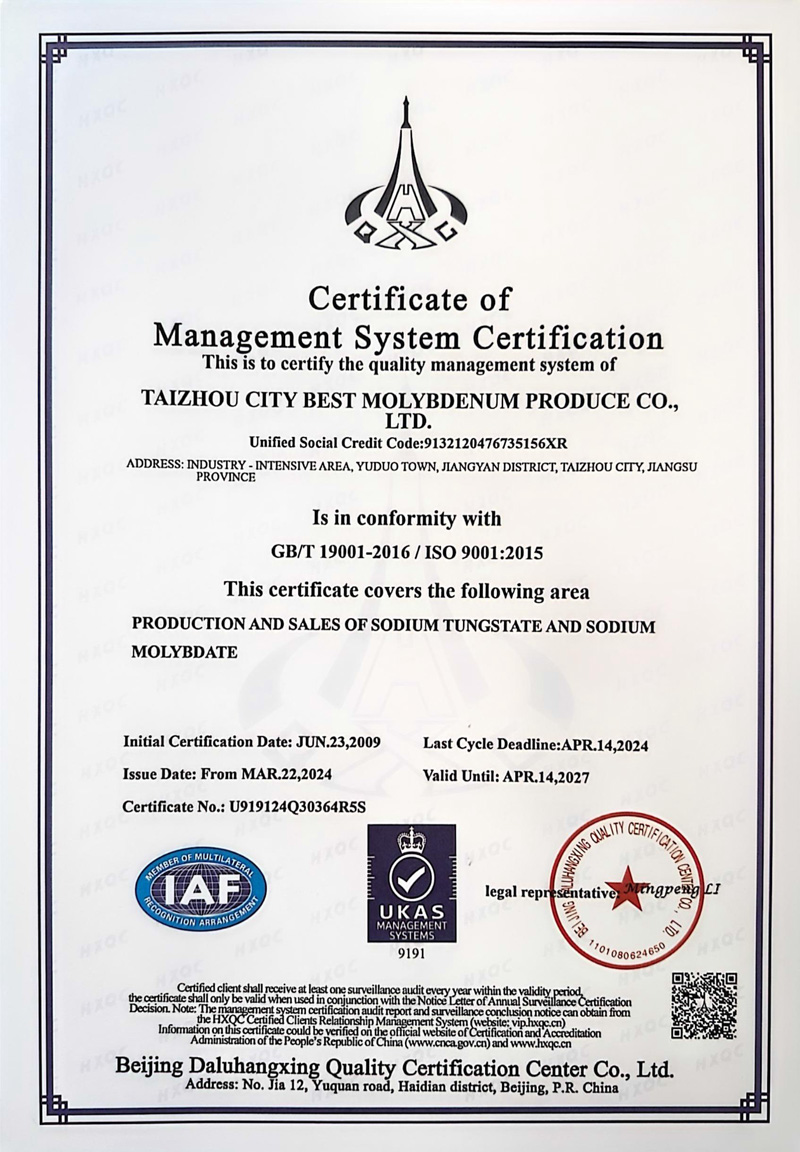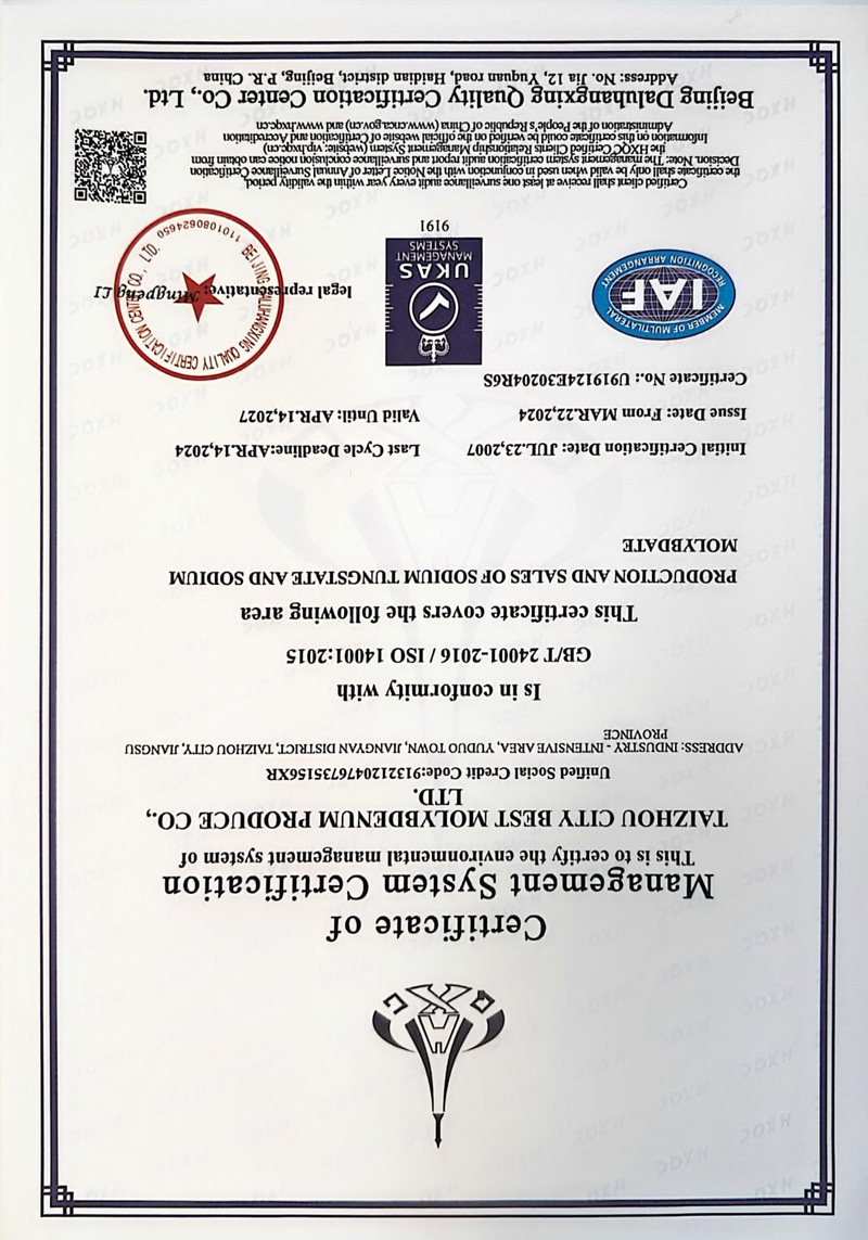 Copyright(C)2023, Taizhou Best Molybdenum Products Co., Ltd. All Rights Reserved. Supported by ChinaChemNet ChemNet Toocle Copyright Notice 備案序號(hào):蘇ICP備05036568號(hào)